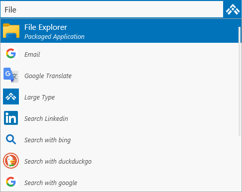 The ActionPad has been significantly extended in Version 5. When you type, it searches according to your settings in Options. By default, it can find: